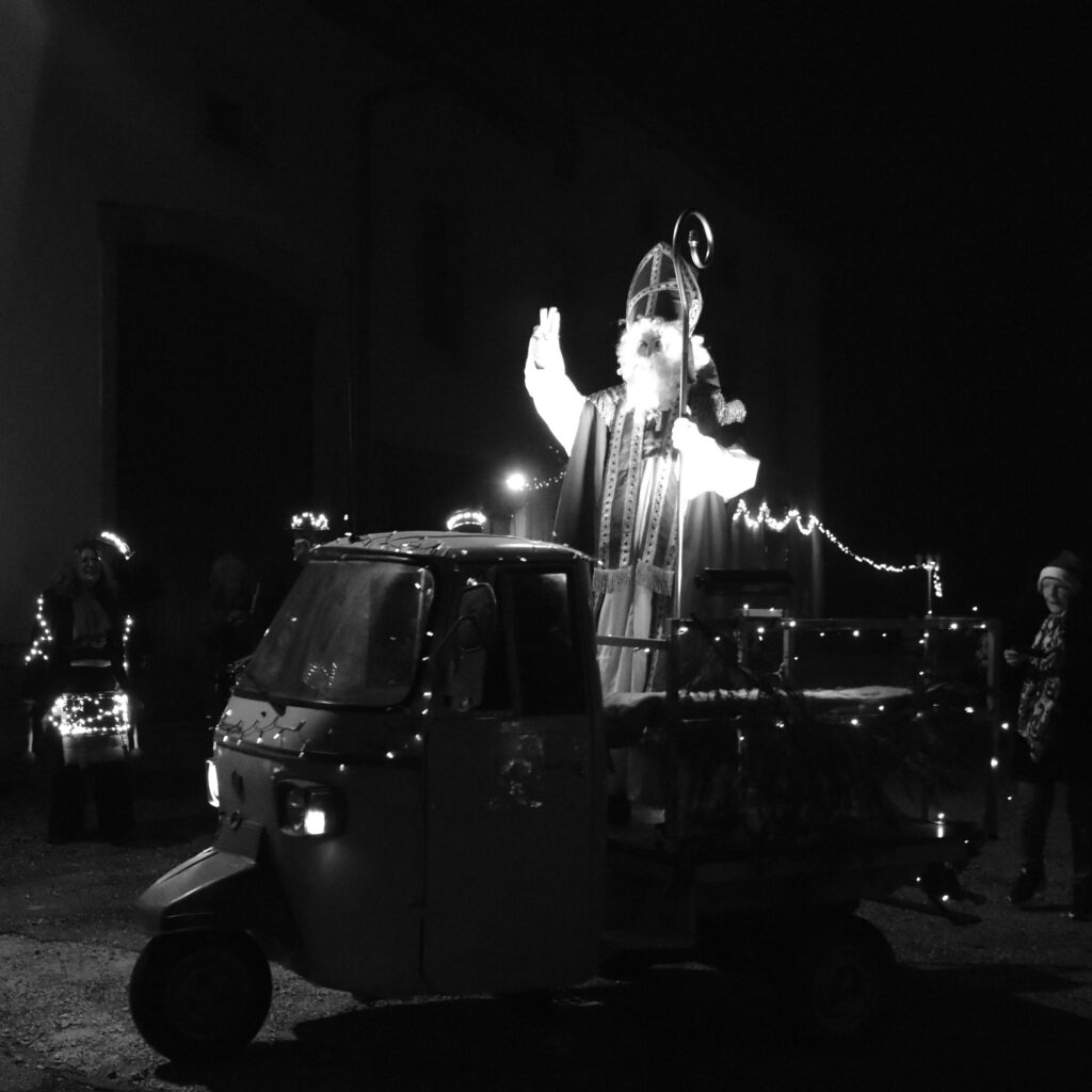 Elle créé chaque année pour l’occasion un spectacle mêlant artistes professionnels et amateurs. Elle met en place des ateliers et différents rendez-vous à l’automne pour associer les habitants de la commune choisie. Le spectacle décale la légende de Saint Nicolas et s’inspire de l’histoire et des histoires du village.